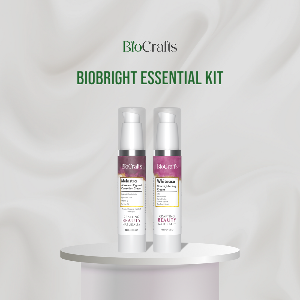 Biobright Essential Kit includes White Ease Skin Lightening Cream and Melastra Advanced Pigment Correction Cream.